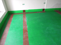 對地板的基礎砂漿表面進行防潮、防塵處理,涂刷綠色環保地保2遍。